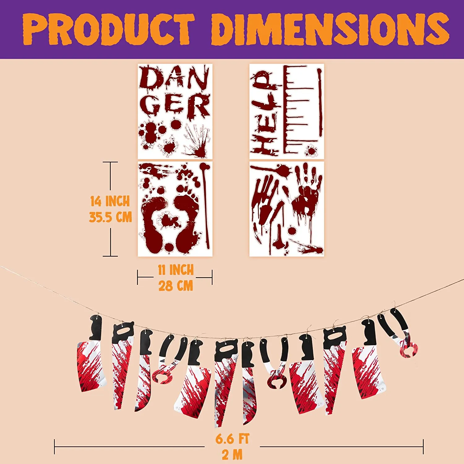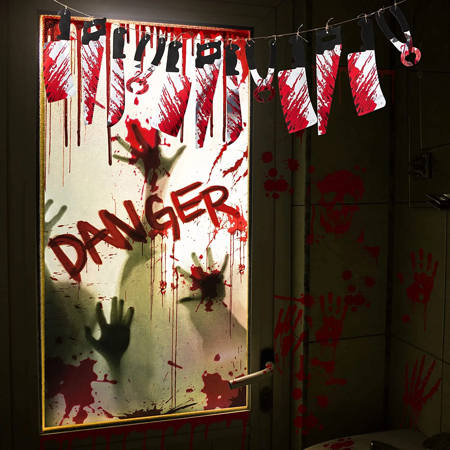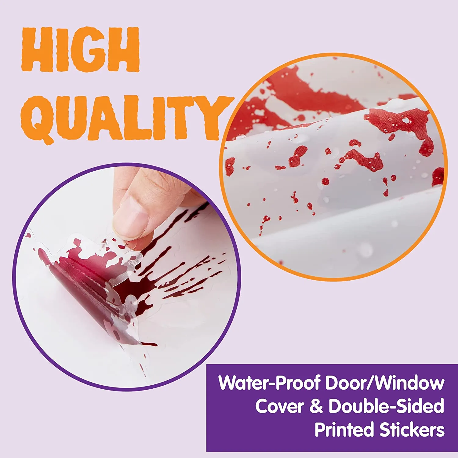 - EASY SET-UP. Our Halloween Decorations for Windows are made out of high-quality materials. These can be removed without leaving residue. These blood prints and splatters Halloween window clings are made with Self-adhesive PVC that can be removed without leaving residue.