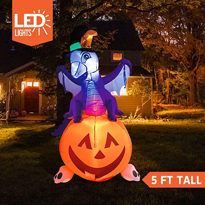 Joiedomi 5ft Tall Dragon on Pumpkin Inflatable – Halloween Decorations