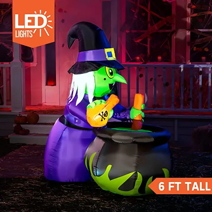 Joiedomi 6ft Halloween Inflatable Witch in Cauldron – Halloween Decorations