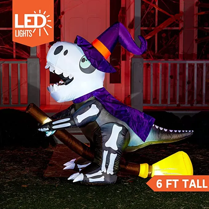 Joiedomi 6ft Inflatable Skeleton Flying Witch T-rex – Halloween Decorations