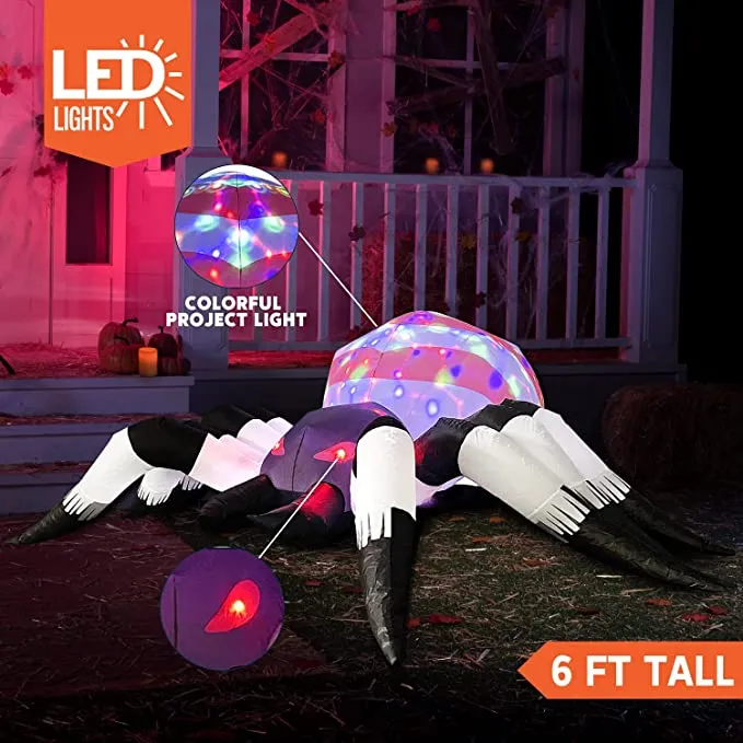 Joiedomi 6ft Inflatable Spider with LED Projection Light – Halloween Decorations