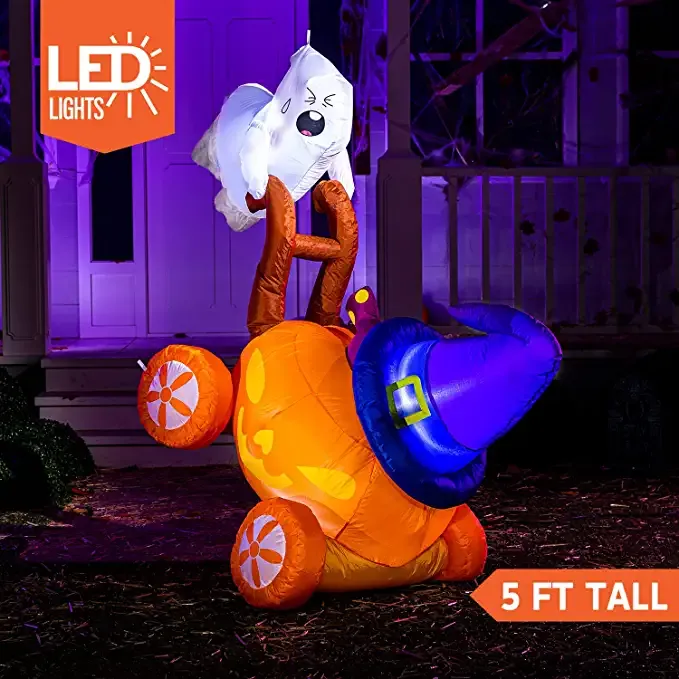Joiedomi 7ft Halloween Pumpkin Carriage with Witch Hat & Hanging Ghost – Halloween Decorations