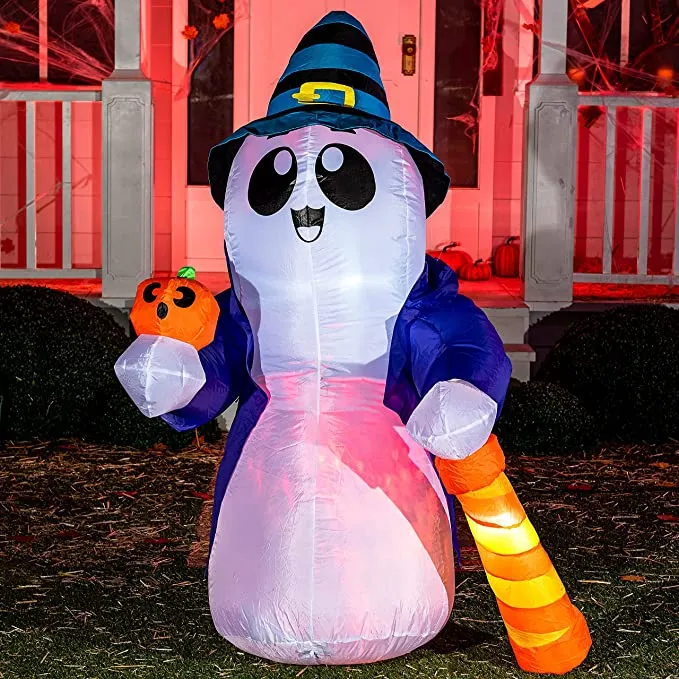 Joiedomi 6ft Tall Halloween Cute Wizard Ghost Inflatable with Flaming Light – Halloween Decorations