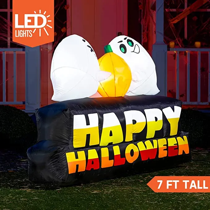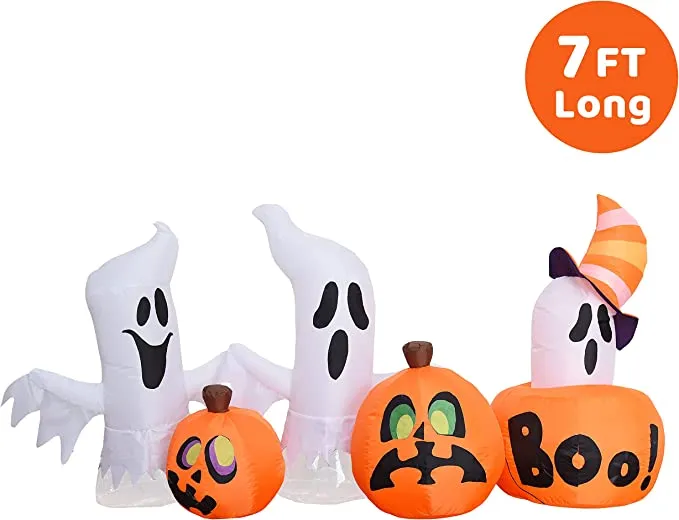 Joiedomi 7ft Inflatable Horizontal Ghost with Pumpkins – Halloween Decorations