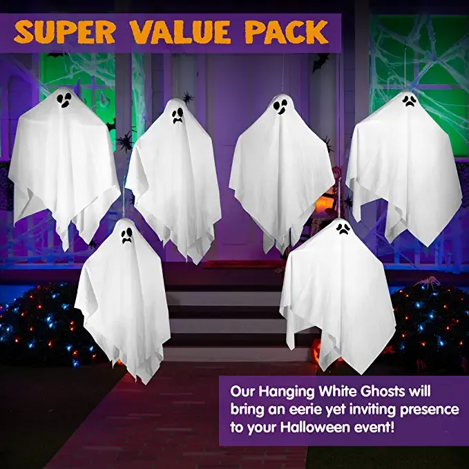 Joyin 6Pcs White Ghost With Spring 27.5in – Halloween Decorations