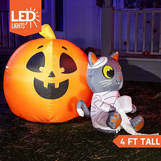 Joiedomi 4ft Light up Halloween Inflatable Pumpkin and Cat Mummy – Halloween Decorations