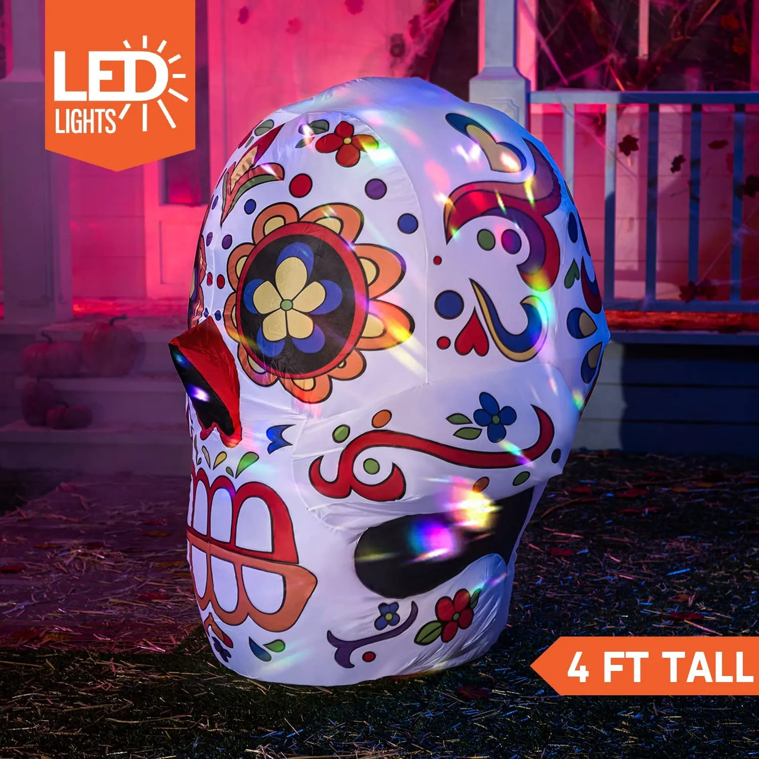 Joiedomi 4ft Kaleidoscope Light Inflatable Skull Decoration – Halloween Decorations