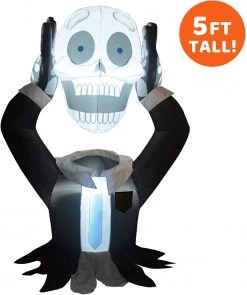 Joiedomi 5ft Halloween Ground Breaker Skeleton Holding Head Inflatable – Halloween Decorations