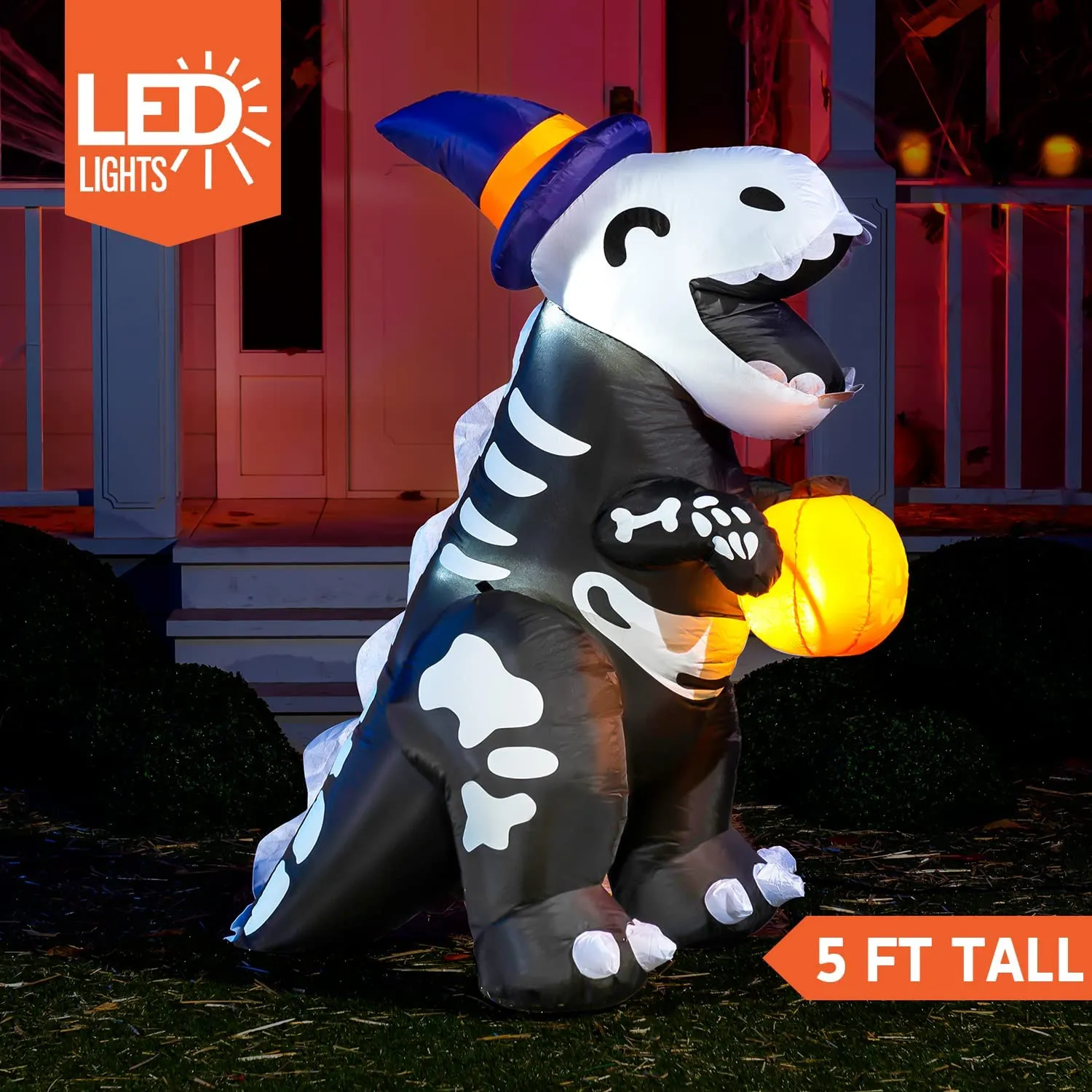 Joiedomi 5ft Halloween Cute Skeleton Dinosaur Inflatable – Halloween Decorations