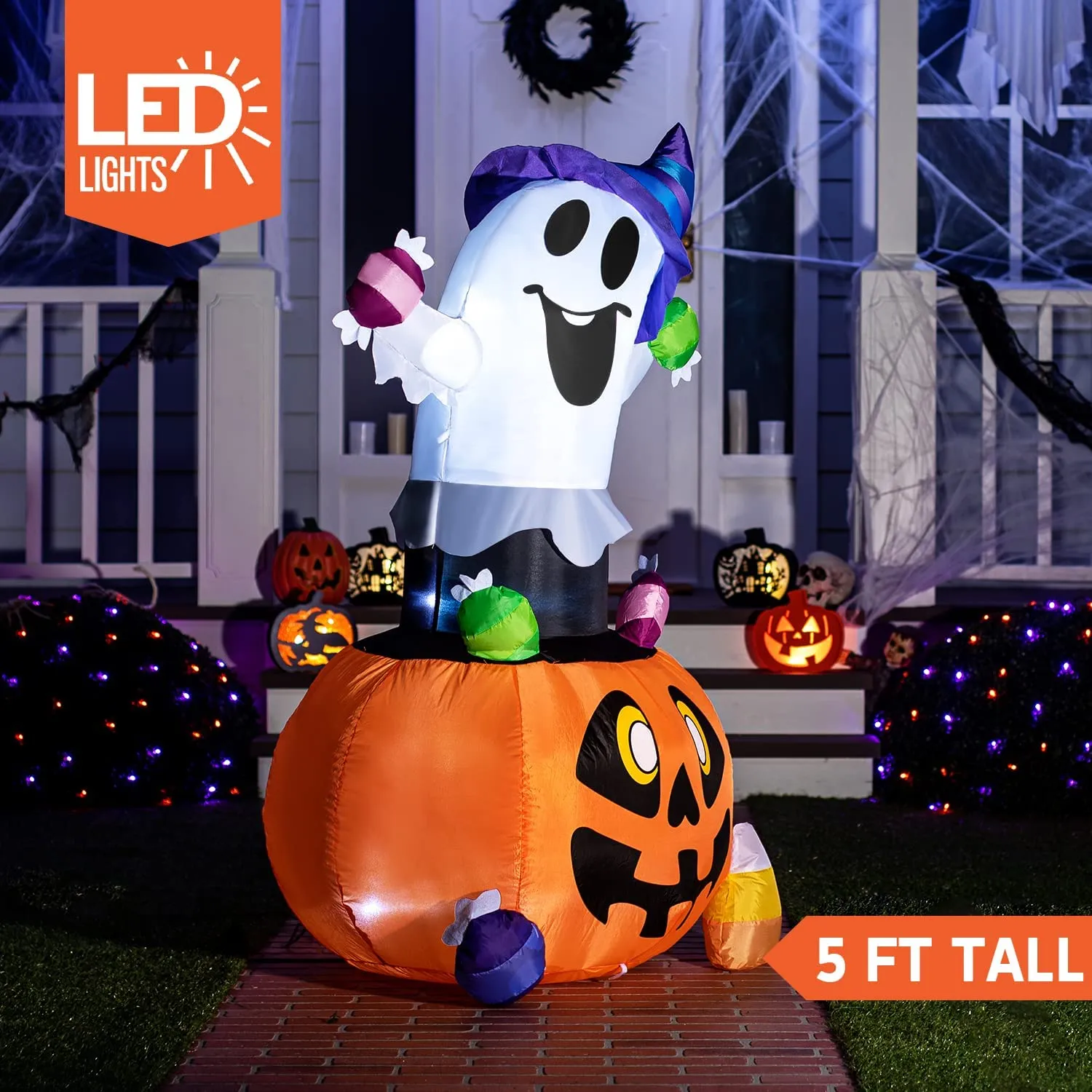 Joiedomi 5ft Halloween Inflatable Gripping Candy Ghost – Halloween Decorations