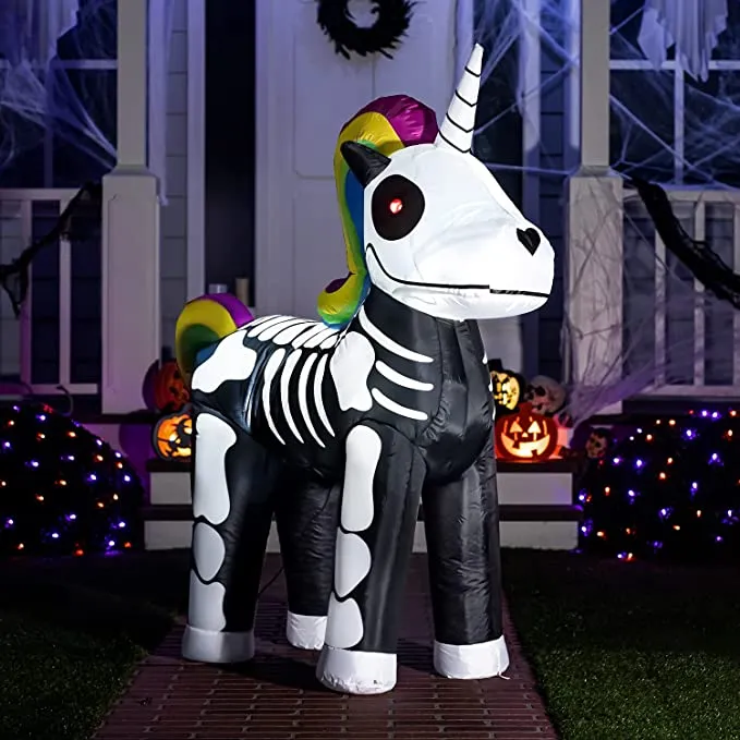 Joiedomi 5ft Inflatable LED Standing Skeleton Unicorn – Halloween Decorations